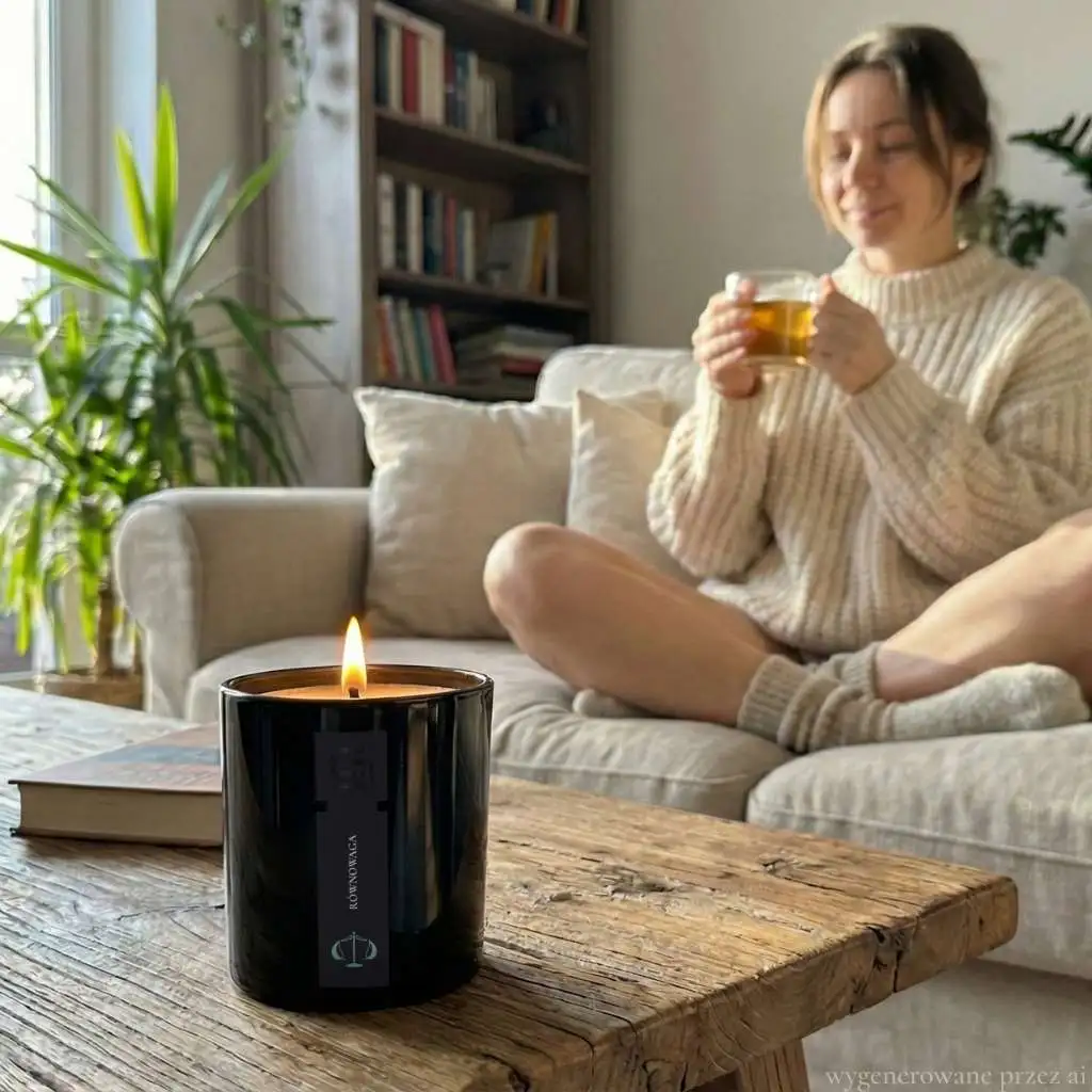 Naturalny wosk sojowy, drewniany knot i olejki zapachowe